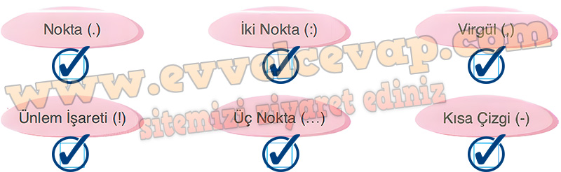Soru: 9) Aşağıda verilen noktalama işaretlerinden hangileri okuduğunuz metinde kullanılmaktadır? İşaretleyiniz. Ardından işaretlediğiniz noktalama işaretlerini birer cümle içerisinde kullanınız.