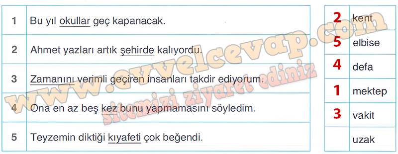 Soru: 11) Aşağıdaki cümlelerde altı çizili kelimeleri eş anlamlılarıyla eşleştiriniz.