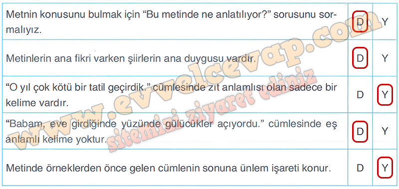 Soru: 12) Aşağıdaki cümlelerde verilen bilgiler doğruysa “D” yi, yanlışsa “Y” yi işaretleyiniz.