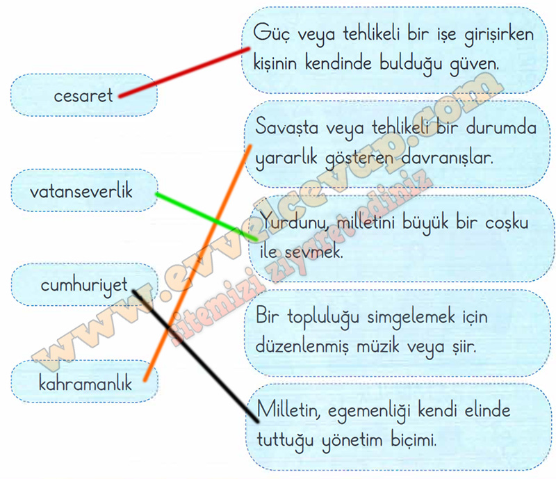 Soru: Sözcüklerle anlamlarını eşleştiriniz.