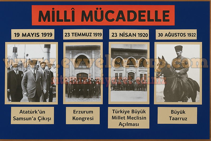 Soru: Millî Mücadele ile ilgili bir sınıf panosu hazırlayınız. Panoyu hazırlarken aşağıdaki yönergeleri dikkate alınız.