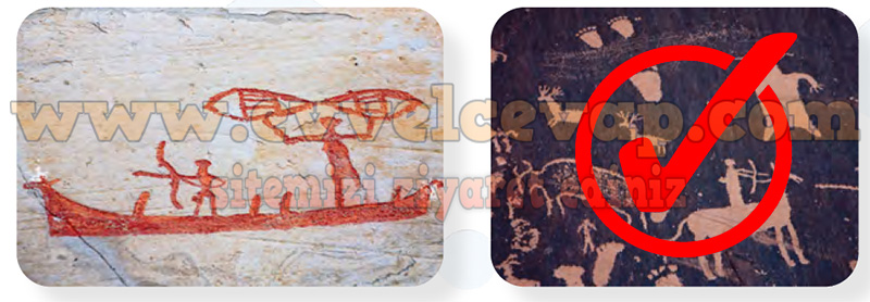 Soru: 4) Aşağıdaki hiyeroglif görsellerini inceleyip birini seçiniz. Ön bilgilerinizden ve incelemenizden hareketle seçtiğiniz görselde ne anlatıldığını tahmin ediniz. Tahminde bulunurken aşağıdaki sorulardan yararlanınız. Tahminlerinizden hareketle ulaştığınız yargıyı içeren bir konuşma yapınız.