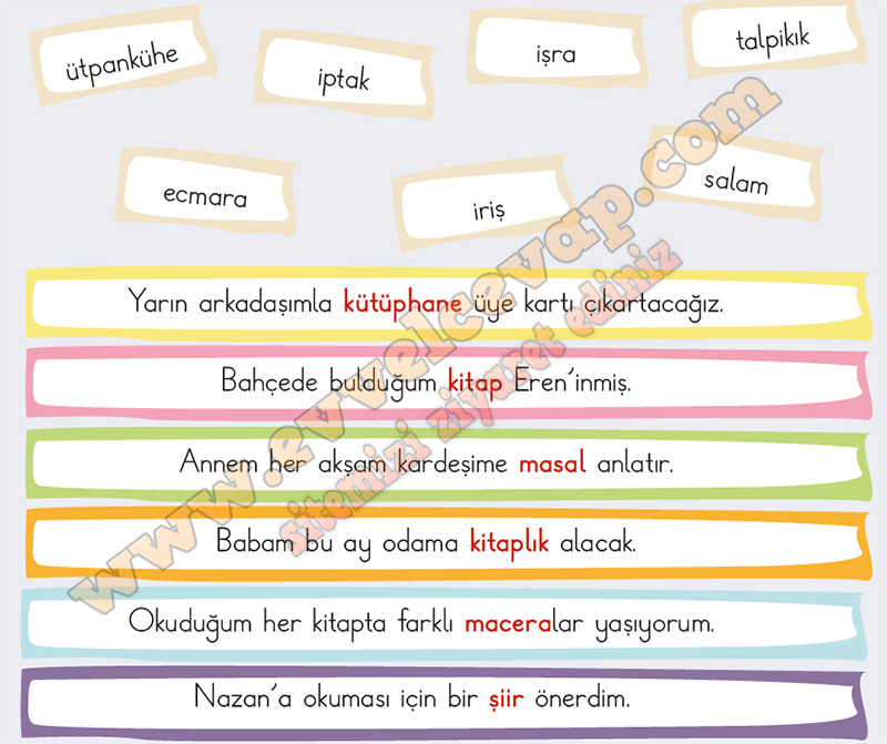 Soru: Harfleri karışık olarak verilen sözcükleri bulup yazınız. Bulduğunuz sözcüklerle eksik cümleleri tamamlayınız.