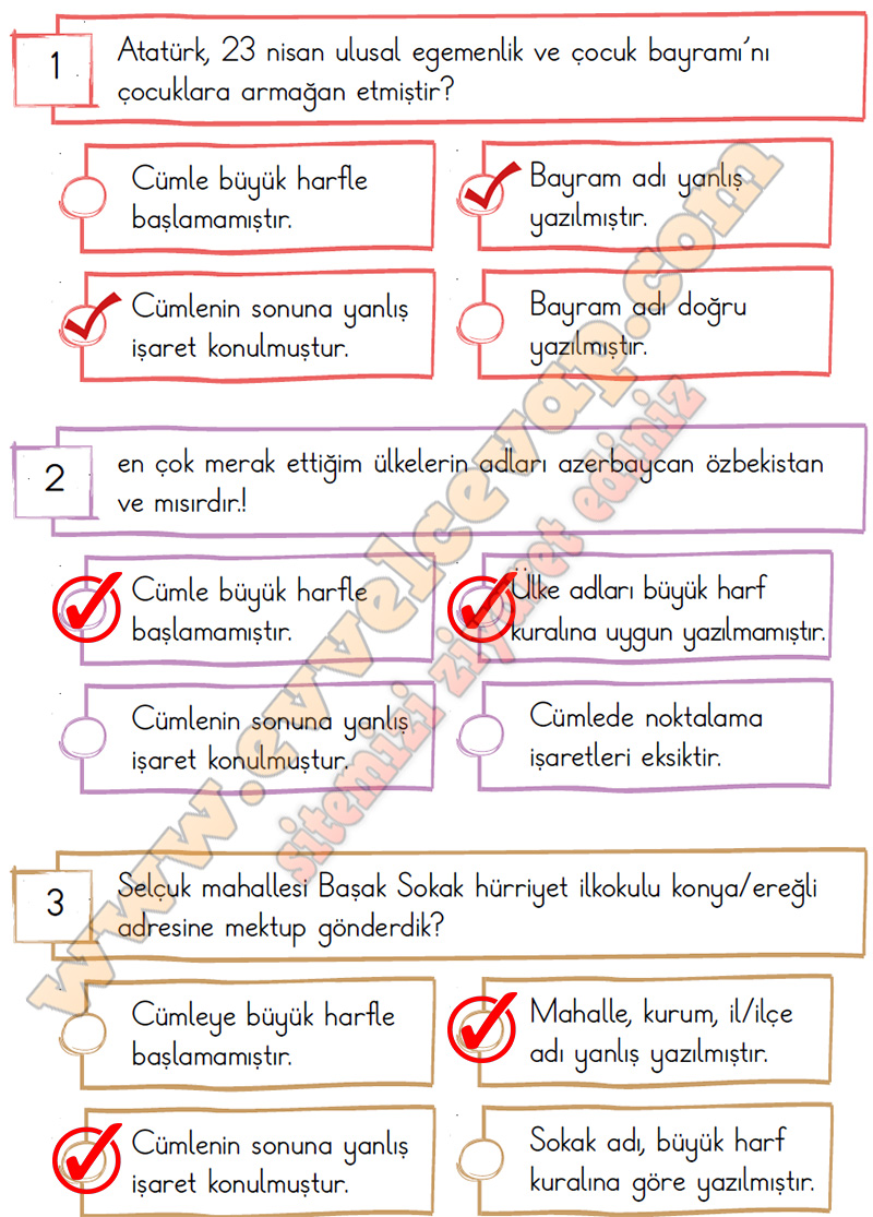 Soru: Cümlelerdeki hataları bulunuz. Örnekteki gibi hataları işaretleyiniz.