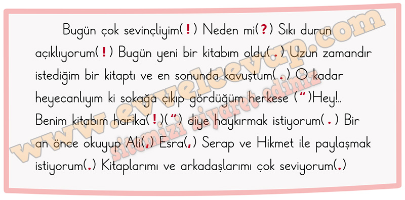 Soru: Metni okuyunuz. Metinde yay ayraçların ( ) içine uygun noktalama işaretlerini yazınız.