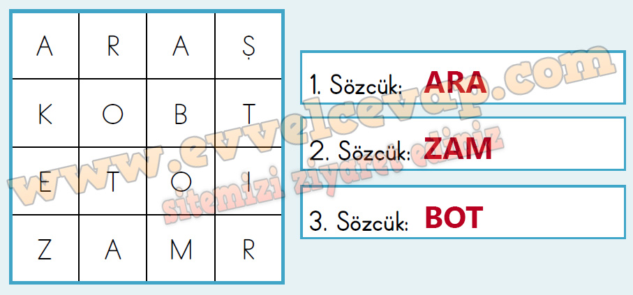 Soru: Kareleri dolaşarak sözcükler oluşturunuz.