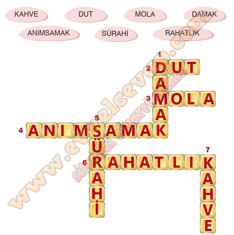 Soru: Aşağıdaki kelimeleri anlamlarından hareketle bulmacadaki yerlerine yerleştiriniz. Anlamını öğrendiğiniz kelimeleri sözlüğünüze yazınız.