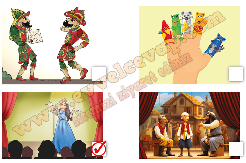 Cevap: Alt soldaki tiyatro sahnesinde şarkı söyleyen kadın görseli uygundur.