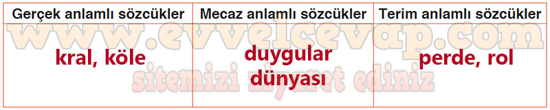 Soru: 8) Okuduğunuz metinde geçen gerçek, mecaz ve terim anlamlı sözcükleri yazınız.