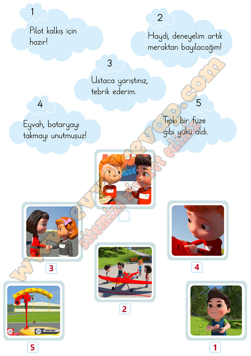 Soru: Metindeki ifadeleri ilgili oldukları sahnelerin görselleri ile eşleştiriniz.