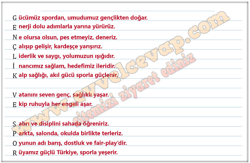 Soru: “Gençlik ve Spor” konulu bir akrostiş yazınız.