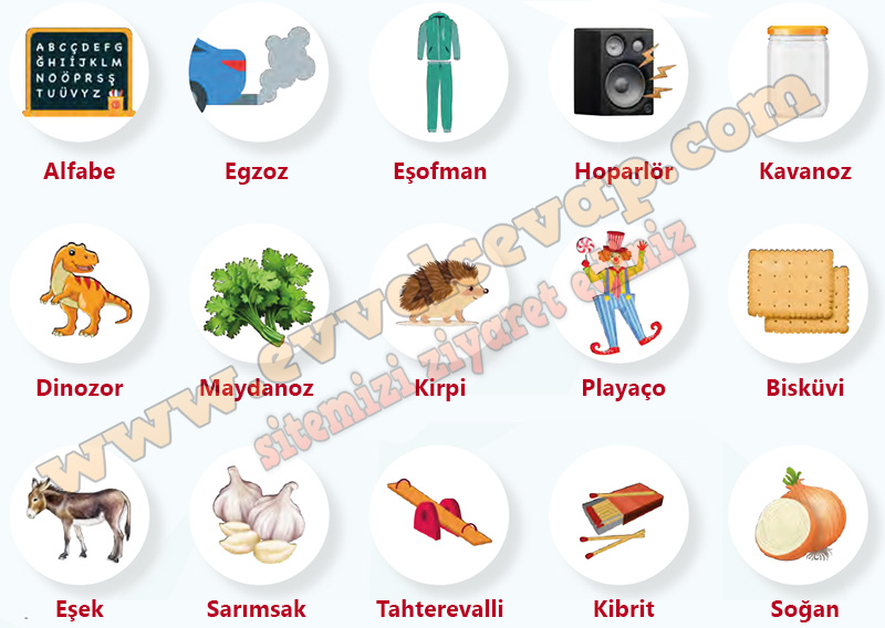 Soru: Aşağıdaki görsellerde verilen kelimeleri yazınız. Bu kelimeleri kullanarak temadan hareketle cümleler kurunuz. Cümlelerinizi söylerken nefesinizi, ses şiddetinizi ayarlamaya; doğru vurgu ve tonlamayla konuşmaya özen gösteriniz.