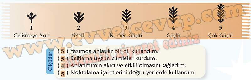 Soru: a) Yazınızı aşağıdaki puan çizelgesini kullanarak değerlendiriniz. Ölçütteki her bir davranışı gerçekleştirme durumunuza göre puanınızı yay ayraç içine yazınız.