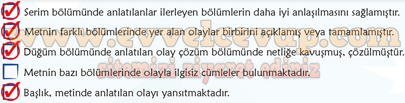 Soru: b) Metnin bölümleri ile ilgili aşağıdaki ifadelerden doğru olanları belirleyip işaretleyiniz.