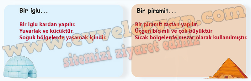 Cevap: Benzetme igloyu portakal kabuğuna benzeterek anlatıyor, karşılaştırma karın özelliklerini açıklıyor, sayısal veriler ise “altmış santimetre” gibi bilgilerle konuyu netleştiriyor.