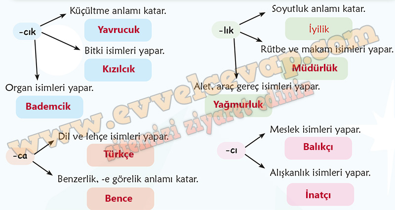 Soru: a) Aşağıdaki “-ca, -cı, -cık, -lık” yapım eklerini ve verilen işlevleri inceleyiniz.