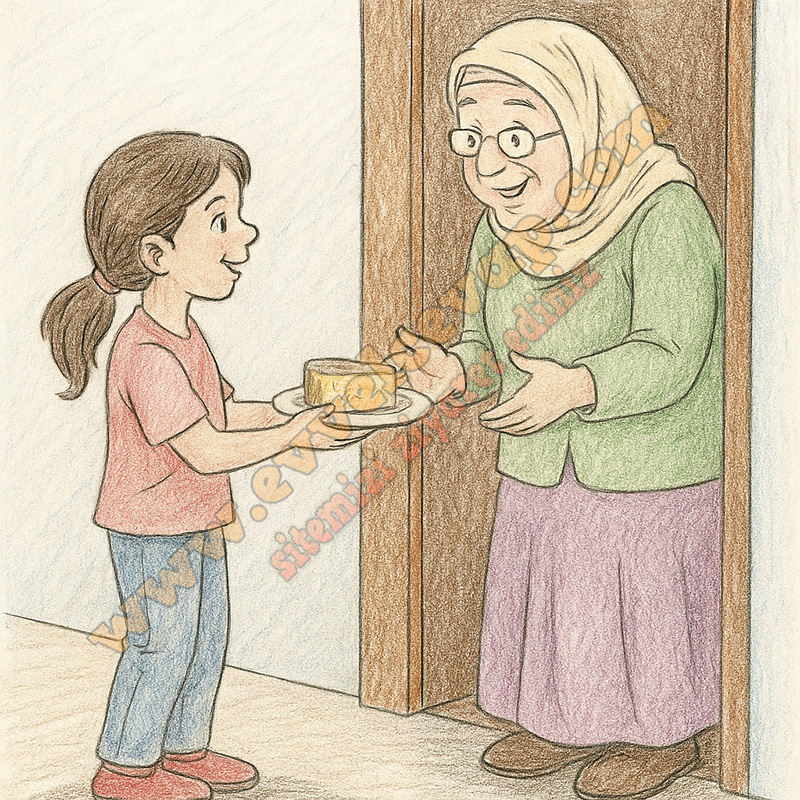 Bir sabah Elif’in annesi kek yapmak istedi ama evde yumurta kalmamıştı. Market de henüz açılmamıştı. Elif hemen yan komşuları Ayla Teyze’ye gidip durumu anlattı. Ayla Teyze gülümseyerek “Tabii ki olur yavrum.” dedi ve bir yumurta verdi. Annesi keki yaptı, daha sonra bir dilimini teşekkür etmek için Ayla Teyze’ye götürdü. Böylece Elif, komşuların en küçük şey için bile birbirine muhtaç olduğunu öğrendi.