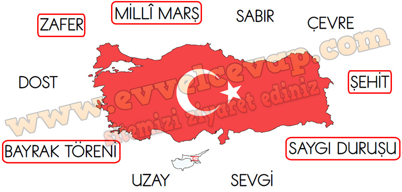 Soru: “Vatan” ile ilgili sözcükleri yuvarlak içine alınız.