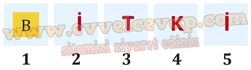 Soru: B) Kelimelerle anlamların kesiştiği yerlerdeki harfler aşağıdaki kutulara sırasıyla yazıldığında hangi kelimeye ulaşılmaktadır? Yazınız.