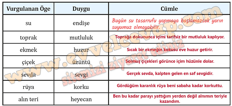 Soru: Metinde şairin büyük harflerle yazarak vurguladığı ifadelerden bazıları aşağıda verilmiştir. Her ifadenin karşısına o ifadeyle ilgili duyguyu yansıtacak birer örnek cümle yazınız.
