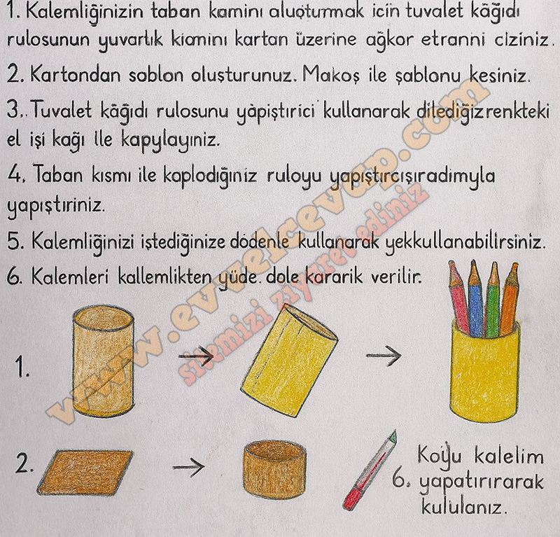 Malzemeler: Yapıştırıcı-Karton-Korumalı Makas-El işi kâğıdı-Tuvalet kâğıdı rulosu