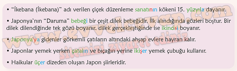 Cevap: Cümlelerdeki renkli kelimeler farklı ekler almış kelimelerdir.