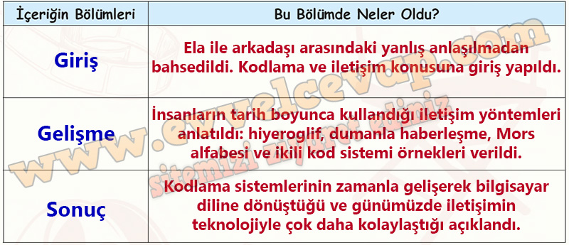 Cevap: Gelişme bölümündeki bilgiler, teknolojinin iletişimi nasıl geliştirdiğini açıklayarak son bölümdeki “bilgisayar dili ve kodlama” konusuna zemin hazırladı. Bu sayede sonuç bölümü daha anlaşılır ve bütünleyici oldu.