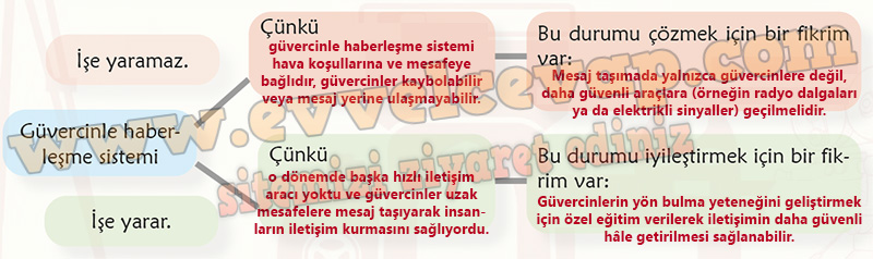 Soru: a) İzlediğiniz içerikte anlatılan iletişim biçimlerinden biri de güvercinle haberleşme sistemidir. Bu sistemi yaygın kullanıldığı döneme göre “işe yararlık” açısından sorgulayarak diyagram üzerindeki ifadeleri tamamlayınız.
