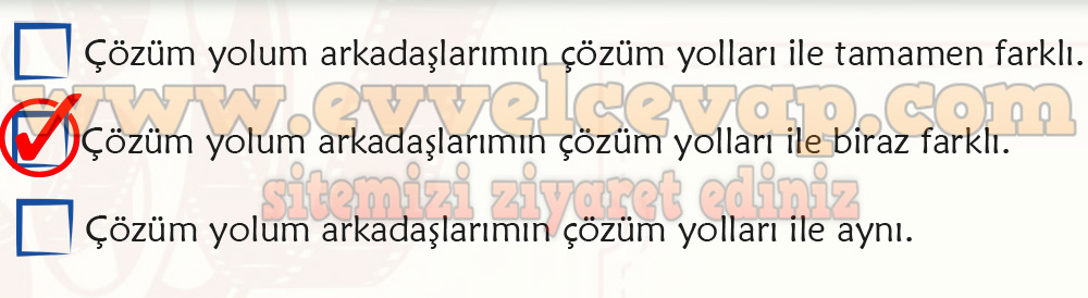 Soru: c) Bu problemi hangi yollarla çözmeyi denerdiniz? Söyleyiniz. En uygun çözüm yolunuzu aşağıya yazarak arkadaşlarınızla paylaşınız.