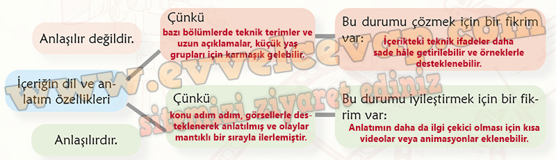 Soru: İzlediğiniz içeriğin dil ve anlatım özelliklerini “anlaşılabilirlik” açısından sorgulayarak diyagram üzerindeki ifadeleri tamamlayınız.