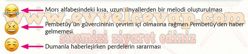 Soru: a) İzlediğiniz içerikte yer alan mizahi öğelerden bazıları aşağıda verilmiştir. Bu öğelerin bulunduğu sahneleri anımsayınız. Sahnelerin sizde uyandırdığı mizahi etkiyi düşünerek ifadeleri uygun emojilerle eşleştiriniz.