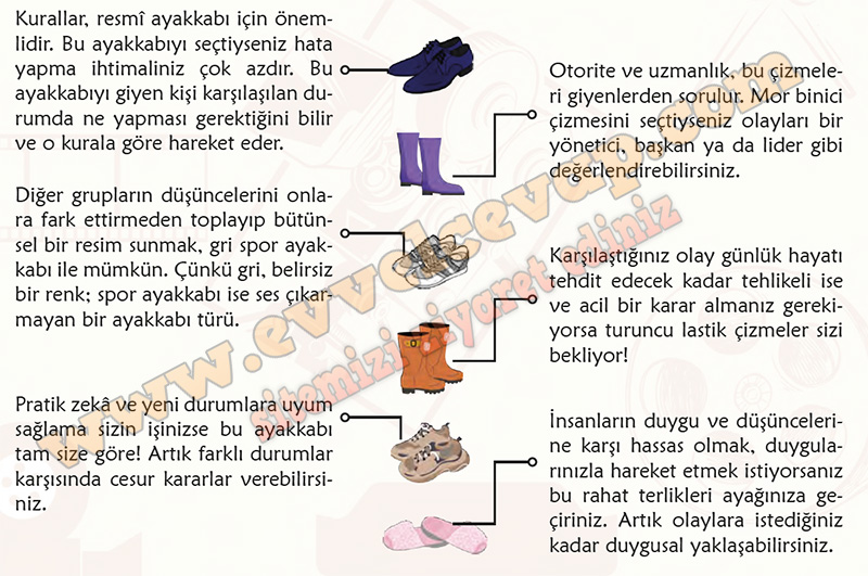 Soru: c) Etkinliğin “a” maddesinde sözü edilen durumu seçtiğiniz ayakkabıya göre grubunuzla sorgulayınız. Sorguladığınız duruma ilişkin akıl yürüterek olumlu/olumsuz yargıya ulaşınız. Bu süreçte aşağıdaki adımlara uymaya dikkat ediniz.