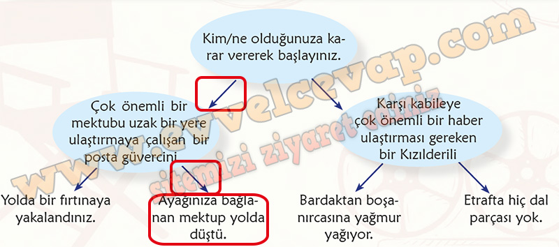 Soru: b) Seçimlerinizden hareketle defterinize deneyim ve gözlemlerinizi hayal gücüyle birleştireceğiniz bir yazı yazınız. Yazınızda özgün çözüm, karakter ve diyaloglar üretmeye özen gösteriniz.