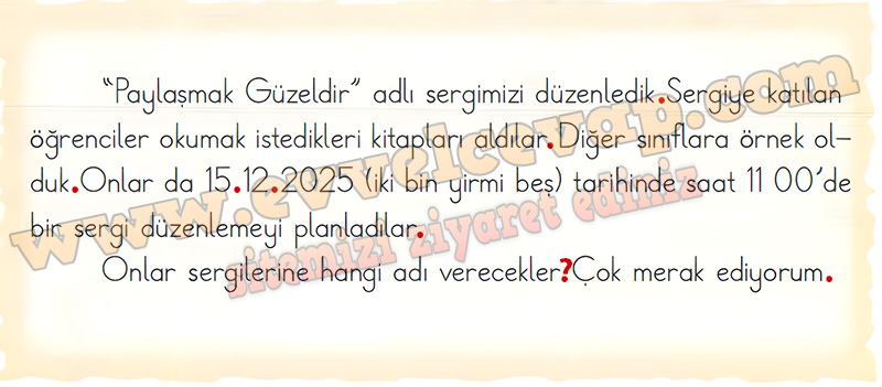 Soru: Metni okuyunuz. Noktanın (.) kullanıldığı yerleri inceleyiniz.