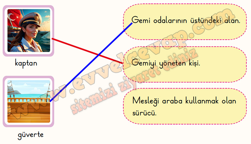 Soru: Görsellerden hareketle sözcüklerin anlamını tahmin edip uygun ifadelerle eşleştiriniz.