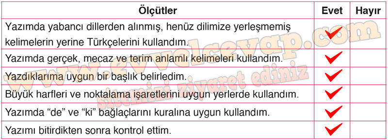 Soru: “Hayır” olarak işaretlediğiniz ölçütler için yapmanız gereken çalışmaları açıklayınız.