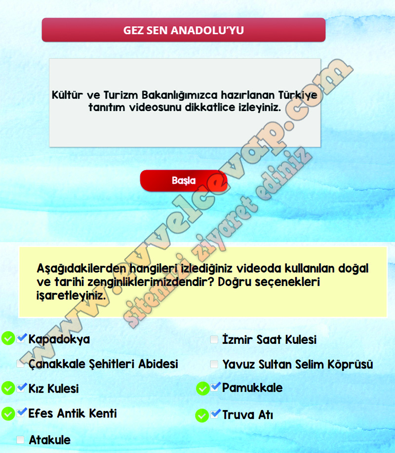 Soru: A) Karekodu okutarak “Gez Sen Anadolu’yu” isimli elektronik içerikte verilen etkinliği yapınız. İzlediğiniz Anadolu tanıtım videosu ile ilgili duygu ve düşüncelerinizi arkadaşlarınızla paylaşınız.