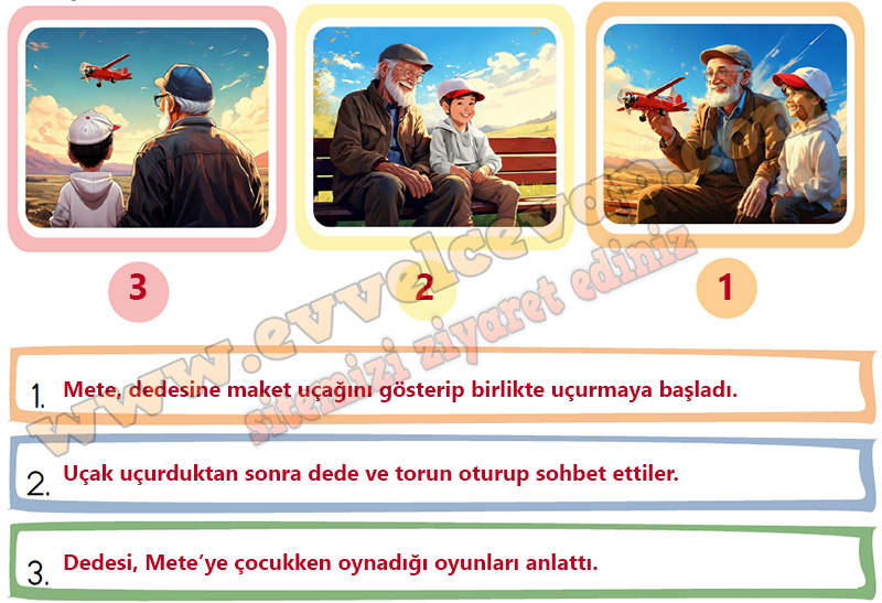 Soru: Dinlediğiniz metinle ilgili görselleri inceleyiniz. Görselleri olayların oluş sırasına göre sıralayınız. Olayları sırasıyla yazınız.