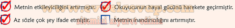 Soru: c) Belirlediğiniz söz sanatlarının içeriğe olan katkıları nelerdir? İşaretleyiniz.