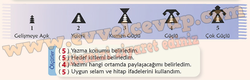Soru: a) Yazma sürecinizi aşağıdaki puan çizelgesini kullanarak değerlendiriniz. Ölçütteki her bir davranışı gerçekleştirme durumunuza göre puanınızı yay ayraç içine yazınız.